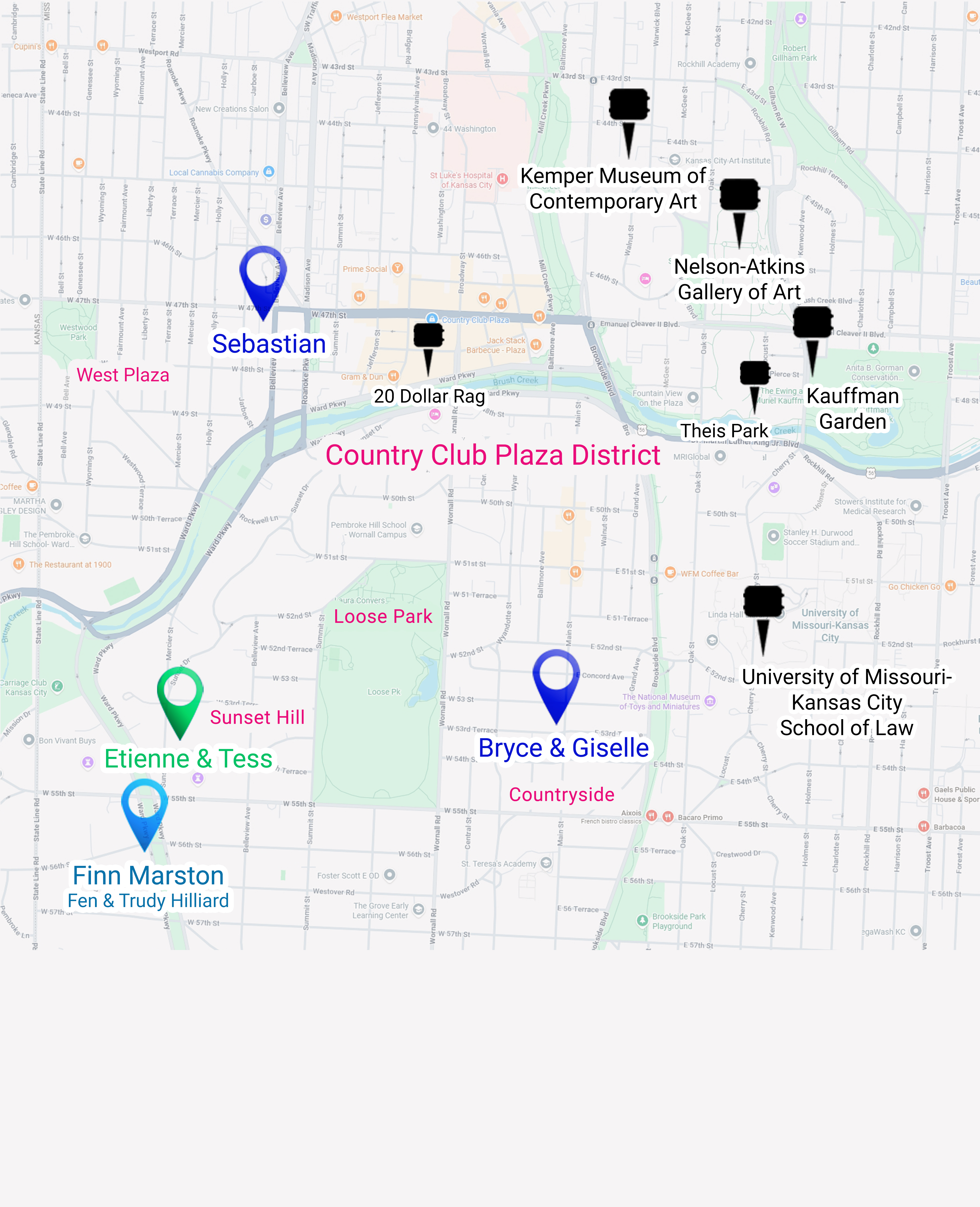 The park between the Kenards’ Countryside neighborhood and the LaMontagnes’ Sunset Hill neighborhood and Finn Marston’s Ward Parkway mansion (formerly the Hilliard mansion)