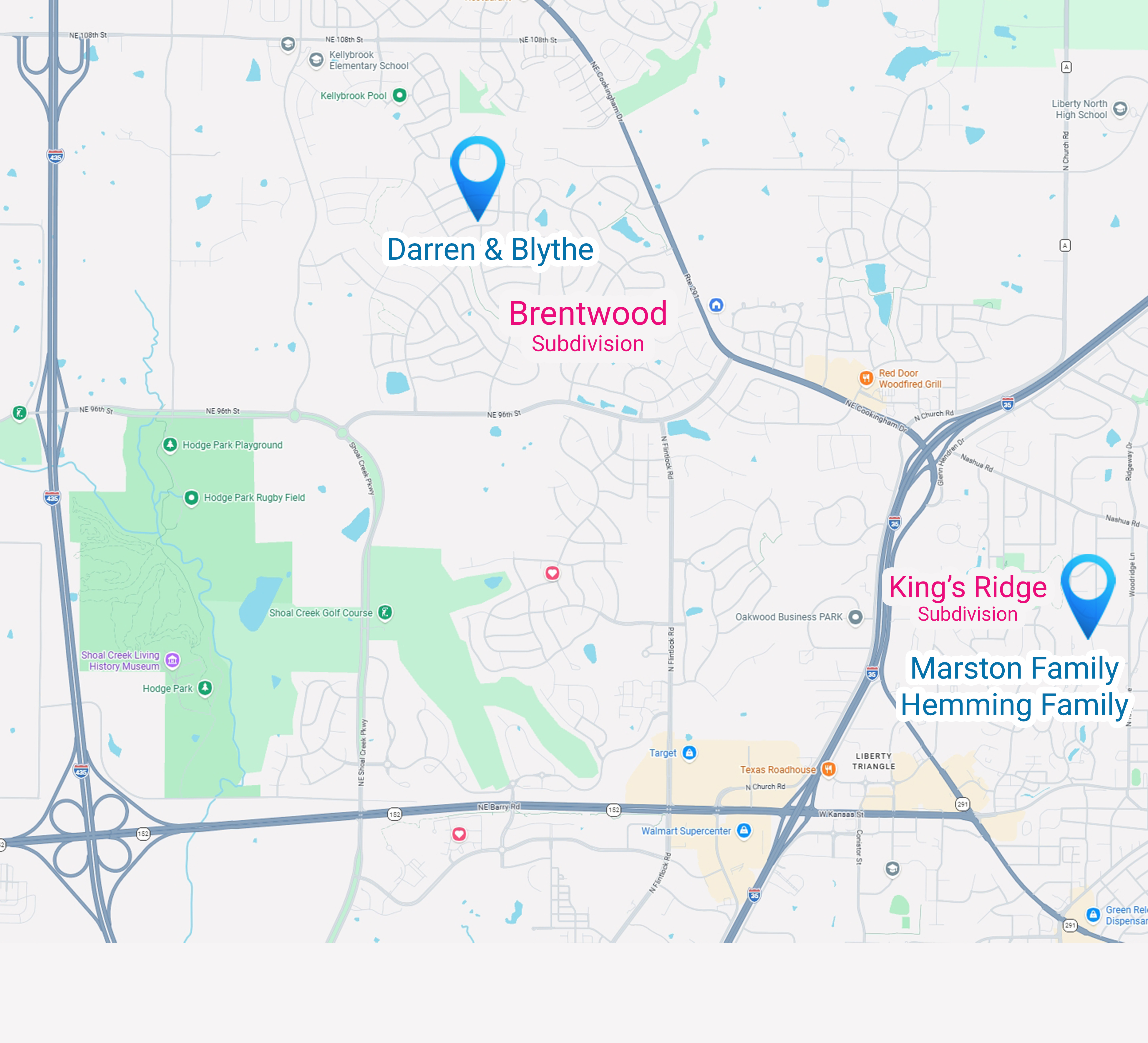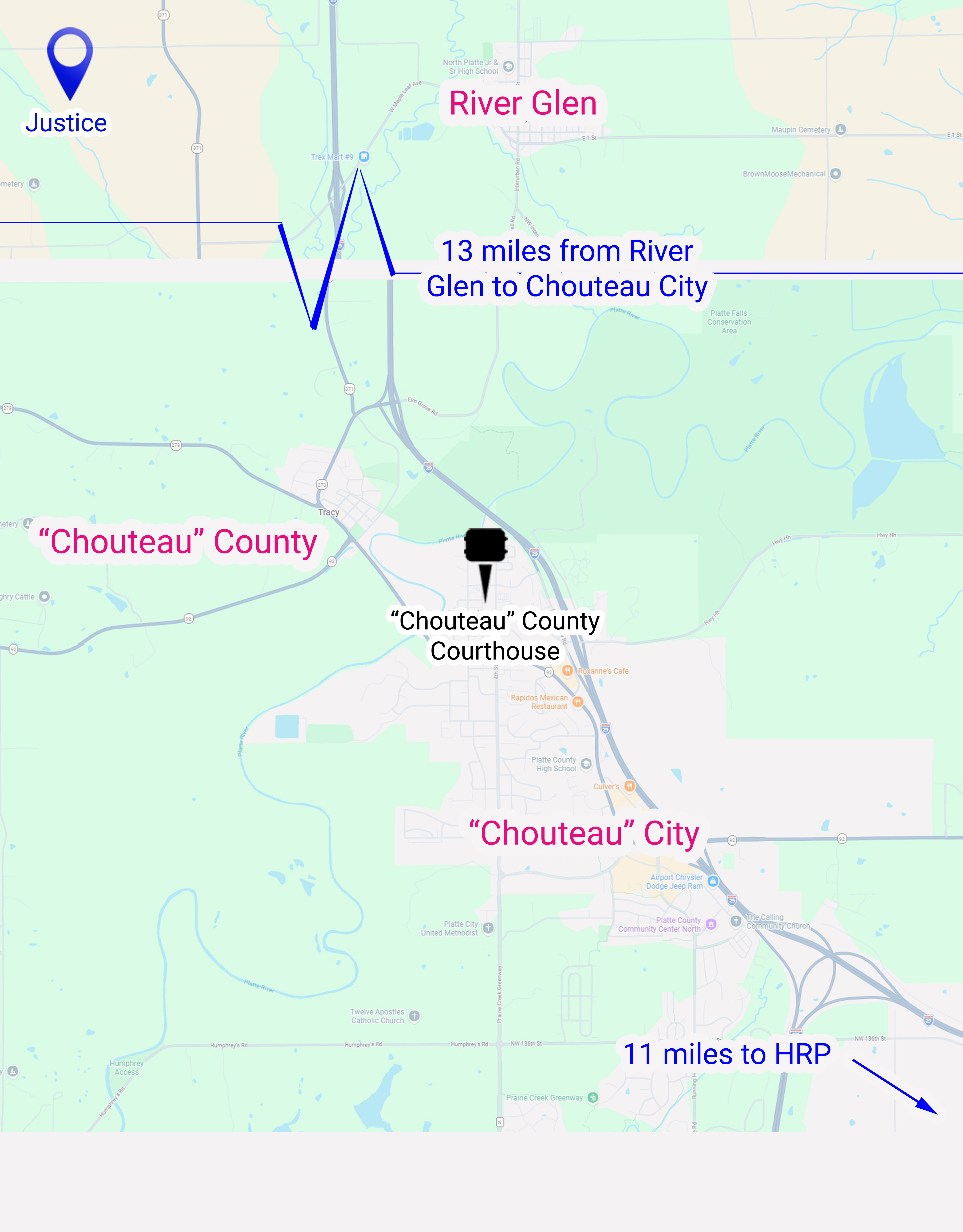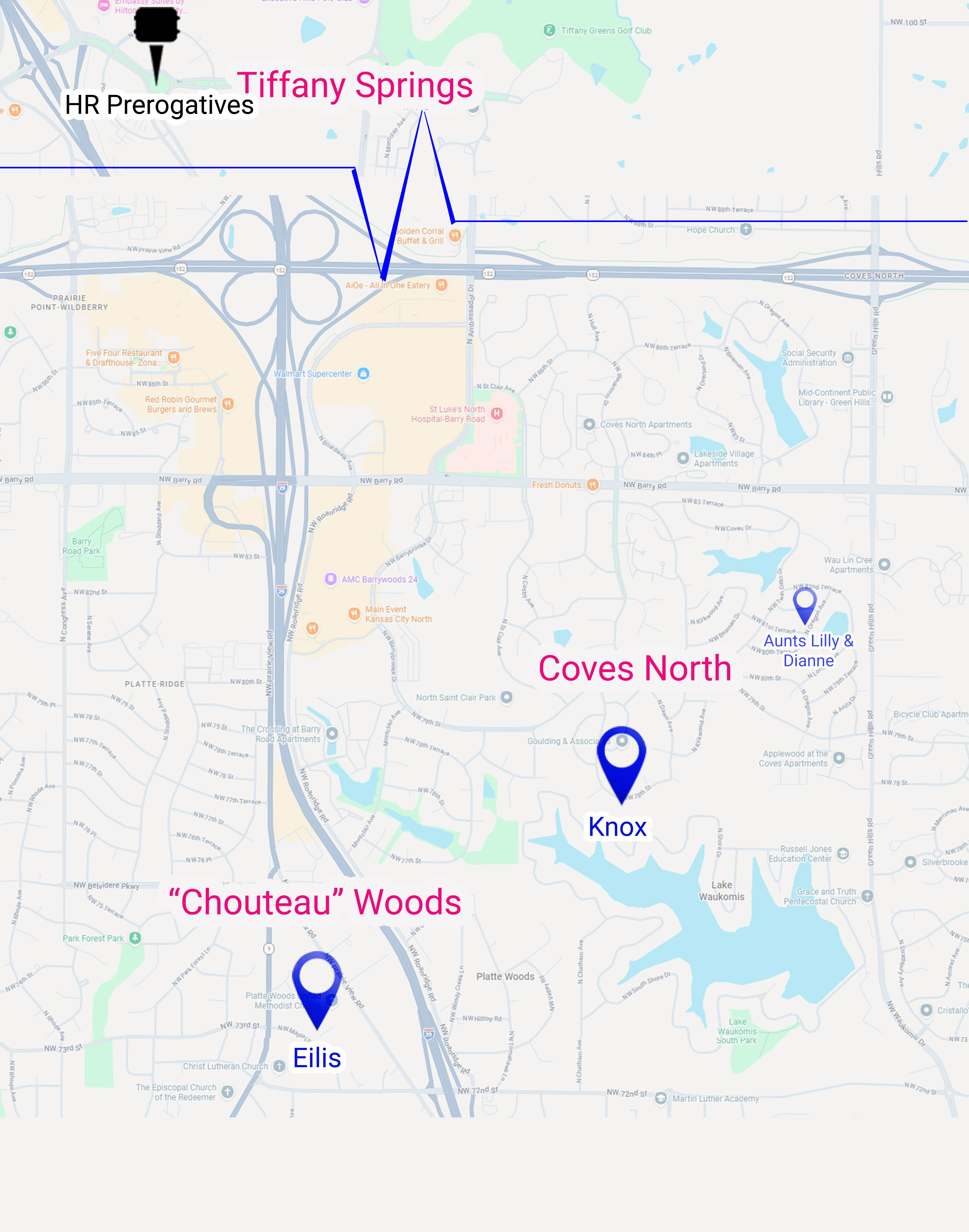 “Chouteau” [Platte] Woods is a tiny little municipality in the middle of Platte County. These little pockets of municipalities are all over the Kansas City metro area. Generally, we are aware of them and refer to them properly just to orient ourselves on the map as to where something is. However, we also expand those pockets in our references to others. Eilis lives in Platte Woods proper. However, Knox, who lives on the other side of I-29, two miles as the crow flies, does not. His address is Kansas City. That said, if someone who knows the area weirdly referenced Knox as living in Platte Woods, it would be understood with a little further clarification.